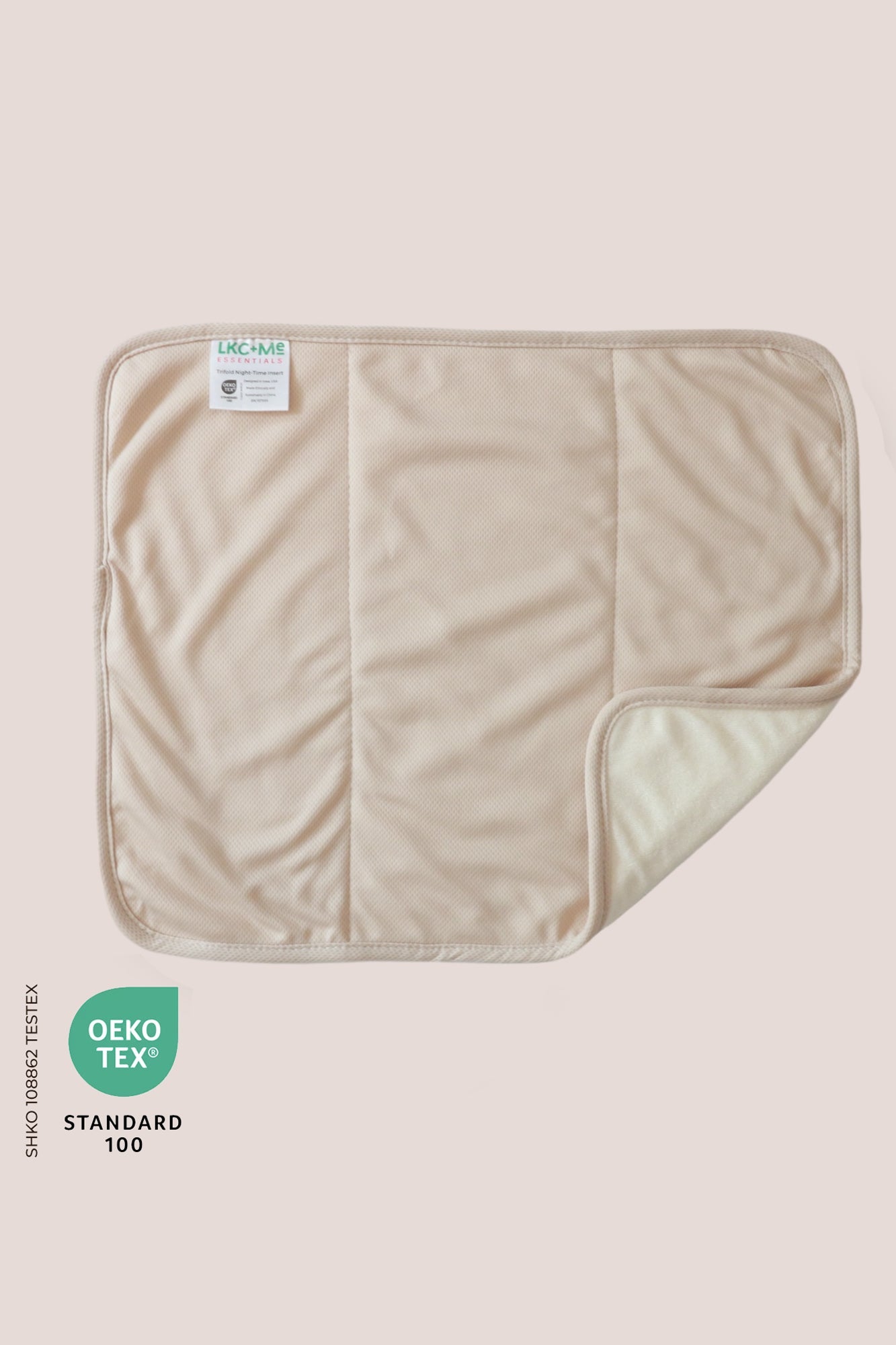 The LKC+ME Night-Time Insert is heavy duty 12-layer night time insert! You choose whether you would like baby to stay dry or damp for potty training! Perfect for BIG toddlers and for children with special needs. Works best with Size 2 (15-55lbs cloth diaper) or One-Size Cloth Diapers. Four layers of layers of bamboo on each side, 12 layers total! Athletic wicking jersey topper for stay-dry feel. Made with OEKO-Tex® certified bamboo fabric (certificate: SHKO 108862). Actual size 16.77in x 9.44in (35cm x 24cm). Color: Beige
